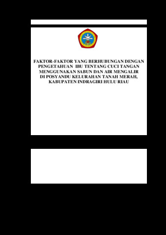Ndraha, Yelvin Astriani (2019) Faktor-faktor Yang Berhubungan Dengan Pengetahuan Ibu Tentang Cuci Tangan Menggunakan Sabun Dan Air Mengalir di Posyandu Kelurahan Tanah Merah Kabupaten Indragiri Hulu, Riau. Undergraduate thesis, Stik Sint Carolus.