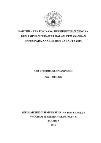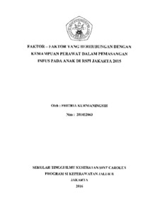 Kurnianingsih, Fhitria (2015) Faktor-faktor yang berhubungan dengan kemampuan perawat dalam pemasanagan infuse anak di RSPI Jakarta 2015. Undergraduate thesis, Stik Sint Carolus.