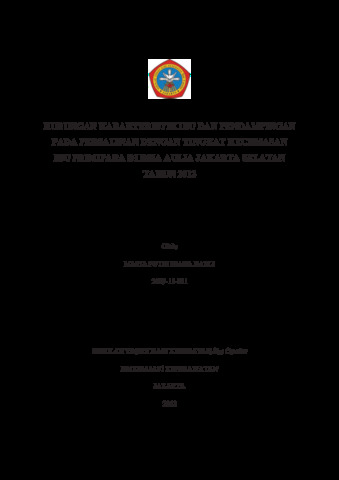 Daeli, Maria Putri Diana (2013) Hubungan karakteristik ibu dan pendampingan pada persalinan dengan tingkat kecemasan ibu primipara di RSIA Aulia Jakarta Selatan tahun 2012. Undergraduate thesis, STIK SInt Carolus.