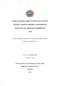 Taekz, Liza Elisabeth (2016) Pengalaman family caregiver dalam mencegah kekambuhan skizofrenia di RS Jiwa DT. Soeharto Heerdjan, Jakarta. Undergraduate thesis, STIK Sint Carolus.