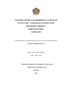 Saputri, Inkai Eka (2013) Faktor – faktor yang berhubungan dengan status gizi balita di Posyandu Beirafu Kabupaten Belu 2012. Undergraduate thesis, STIK Sint Carolus.