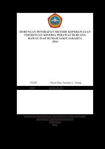 Tobing, Masri Desy Suzanna L. (2017) Hubungan Penerapan Metode Keperawatan Tim Dengan Kinerja Perawat Di Ruang Rawat Inap Rumah Sakit Jakarta 2016. Undergraduate thesis, STIK Sint Carolus.