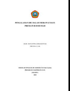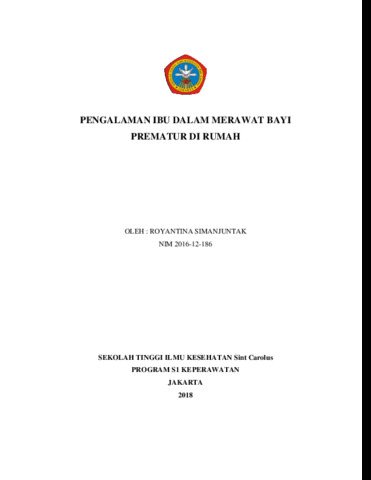 Simanjuntak, Royantina (2018) Pengalaman ibu dalam merawat bayi prematur di rumah. Undergraduate thesis, STIK Sint carolus.