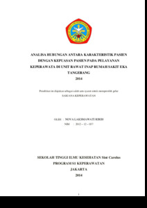 Ririh, Nova Laksmawati (2014) Analisa Hubungan Antara Karakteristik dan Kepuasan Pasien Pada Pelayanan Keperawatan di Unit Rawat Inap Rumah Sakit Eka Tangerang. Undergraduate thesis, STIK Sint carolus.