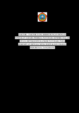 Adi, Rizky Gayatri Septiana (2012) Faktor – faktor yang berhubungan dengan tindakan SADARI (Periksa Payudara Sendiri) dalam upaya deteksi dini kanker payudara pada perempuan dewasa muda di RW.06 Kelurahan Pedurenan, Tangerang. Undergraduate thesis, STIK Sint carolus.